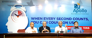কোলকাতা (২৮ অক্টোবর '২২):- বিশ্ব স্ট্রোক দিবস (World Stroke Day)-এর প্রাক্কালে, ব্রেন স্ট্রোক (Brain Stroke) সম্পর্কে জনগণের মধ্যে সচেতনতা তৈরির উদ্যোগ নিল 'অ্যাপোলো মাল্টিস্পেশালিটি হসপিটাল'- এর কোলকাতা শাখা (Apollo Multispeciality Hospitals, Kolkata)।আজ 'কোলকাতা প্রেস ক্লাব'-এ হাসপাতালের স্বাস্থ্য অধিকর্তা (Director of Medical Services) ডাঃ সুরিন্দর সিং ভাটিয়া (Dr. Surinder Singh Bhatia)-র নেতৃত্বের কোলকাতা অ্যাপোলো-র স্নায়ুরোগ বিভাগের নির্দেশক (Director, Department of Neurology) ডাঃ অমিতাভ ঘোষ, জরুরীকালীন ঔষধ বিভাগ (Department of Emergency Medicine)-এর চিকিৎসক (Consultant, Dr. Arijit Bose) এবং ইন্টারভেনশনাল নিউরো রেডিওলজিস্ট বিভাগ (Department of Interventional Neuro-radiologist)-এর চিকিৎসক নির্মাল্য রায় (Consultant Dr. Nirmalya Ray) ব্রেন স্ট্রোক সম্পর্কে জনগণকে সচেতন করেন।
